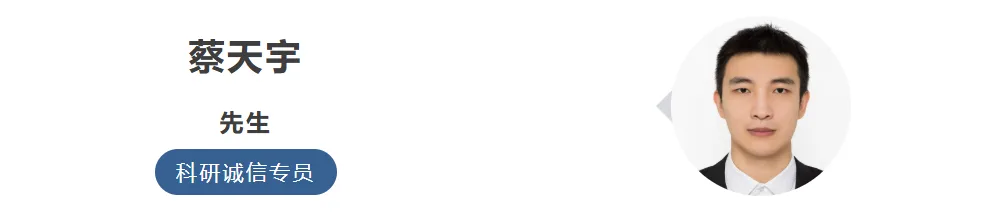 蔡天宇自 2023 年加入 Frontiers,现任科研诚信专员,主要专注于数据诚信与论文工厂调查工作。加入公司后,他先后参与图像诚信工作组和论文工厂工作组,为团队提供检测技术支持,并参与制定多项内部数据验证标准和调查方案。凭借丰富的一线调查经验以及实事求是的工作态度,他连续两年入围质量卫士最终候选名单(Top 3)。此外,他长期负责团队成员的专业培训,持续推动团队发展,并积极探索科研诚信边界相关的行业实践。