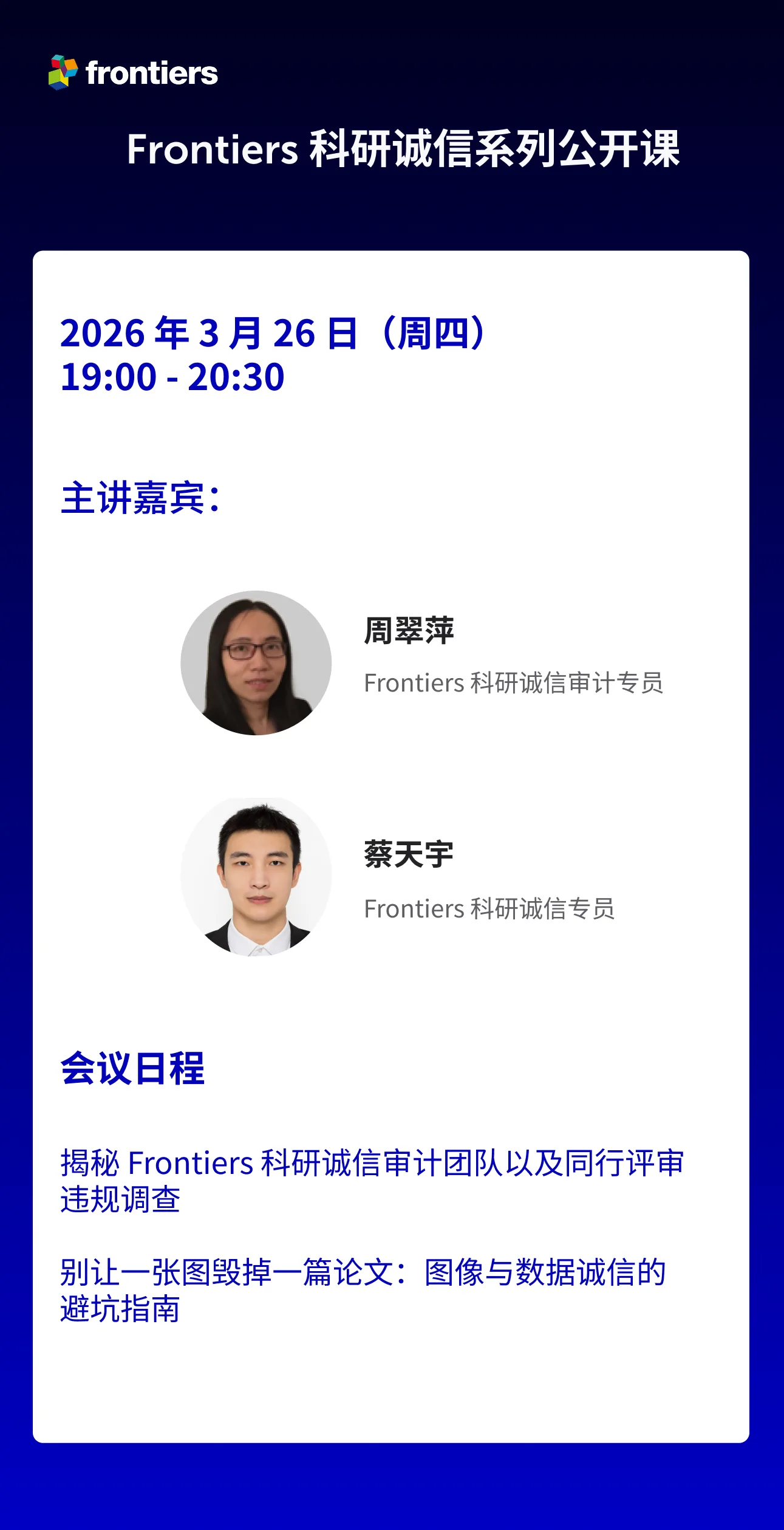 欢迎加入科研诚信公开课,和 Frontiers 一起,把科研这件事做得更扎实、更透明,更值得信任。